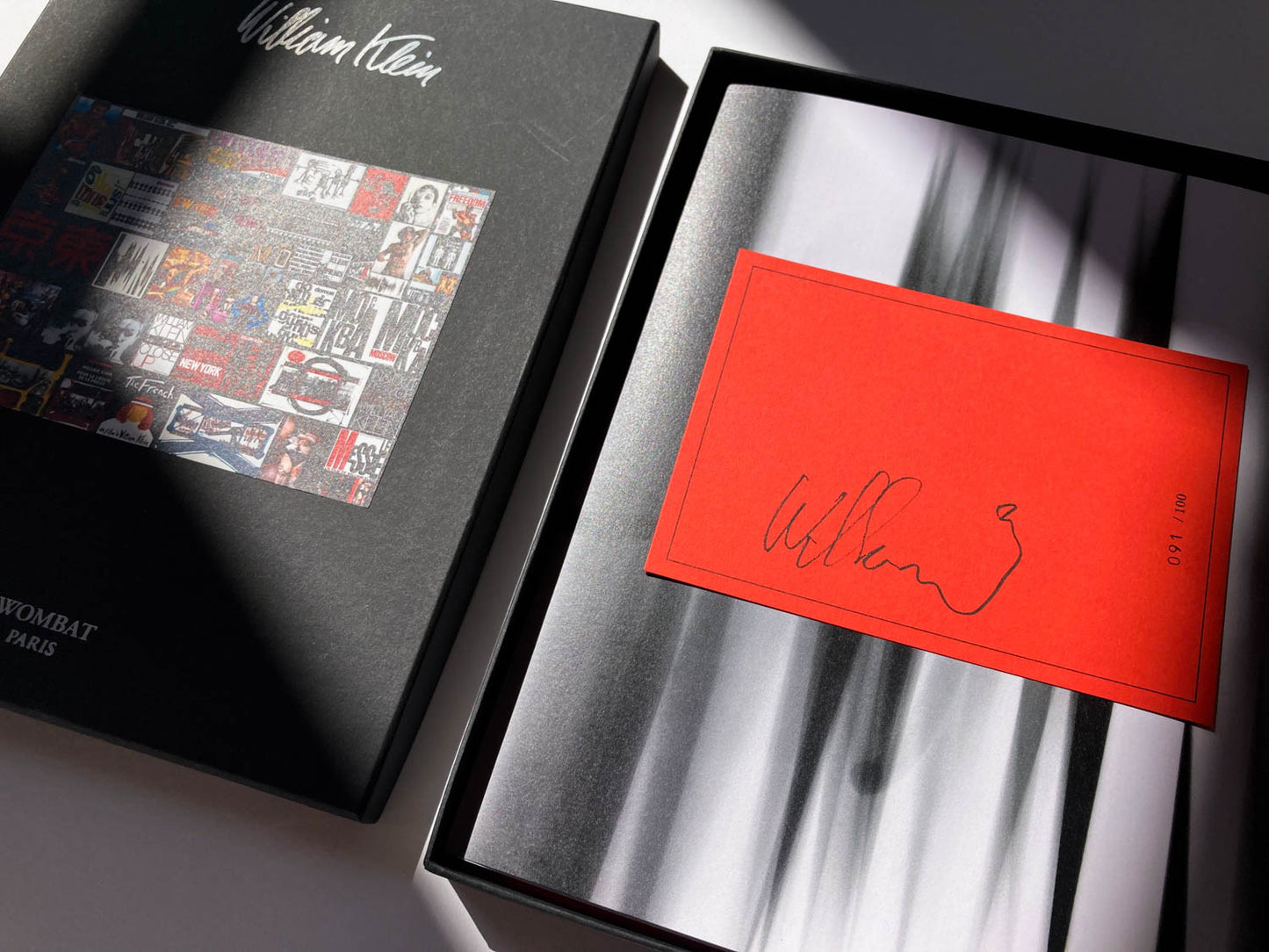 Le coffret Wombat No. 33, édition signée, contient deux tirages photographiques numérotés et un portfolio de 10 images de William Klein. La signature authentique de l'artiste est apposée sur un cartel numéroté de 001 à 100, présentée au fond du coffret. Les tirages sont réalisés par le laboratoire Processus sur papier d'art Hahnemühle. Chaque coffret est daté, numéroté et assemblé à la main dans notre atelier. Edition limitée à 100 exemplaires.