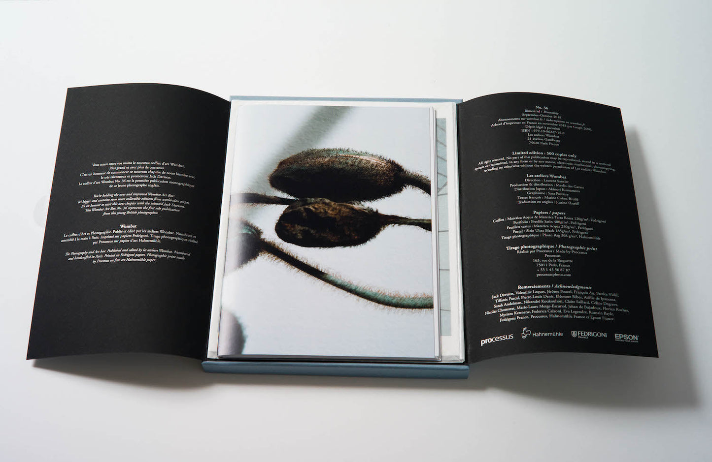 EDITION D'ARCHIVE - 5 EXEMPLAIRES - Le coffret Wombat 36 est un bijou d'édition réalisé avec le jeune photographe londonien Jack Davison. Chaque coffret est numéroté, daté et assemblé à la main dans nos ateliers.