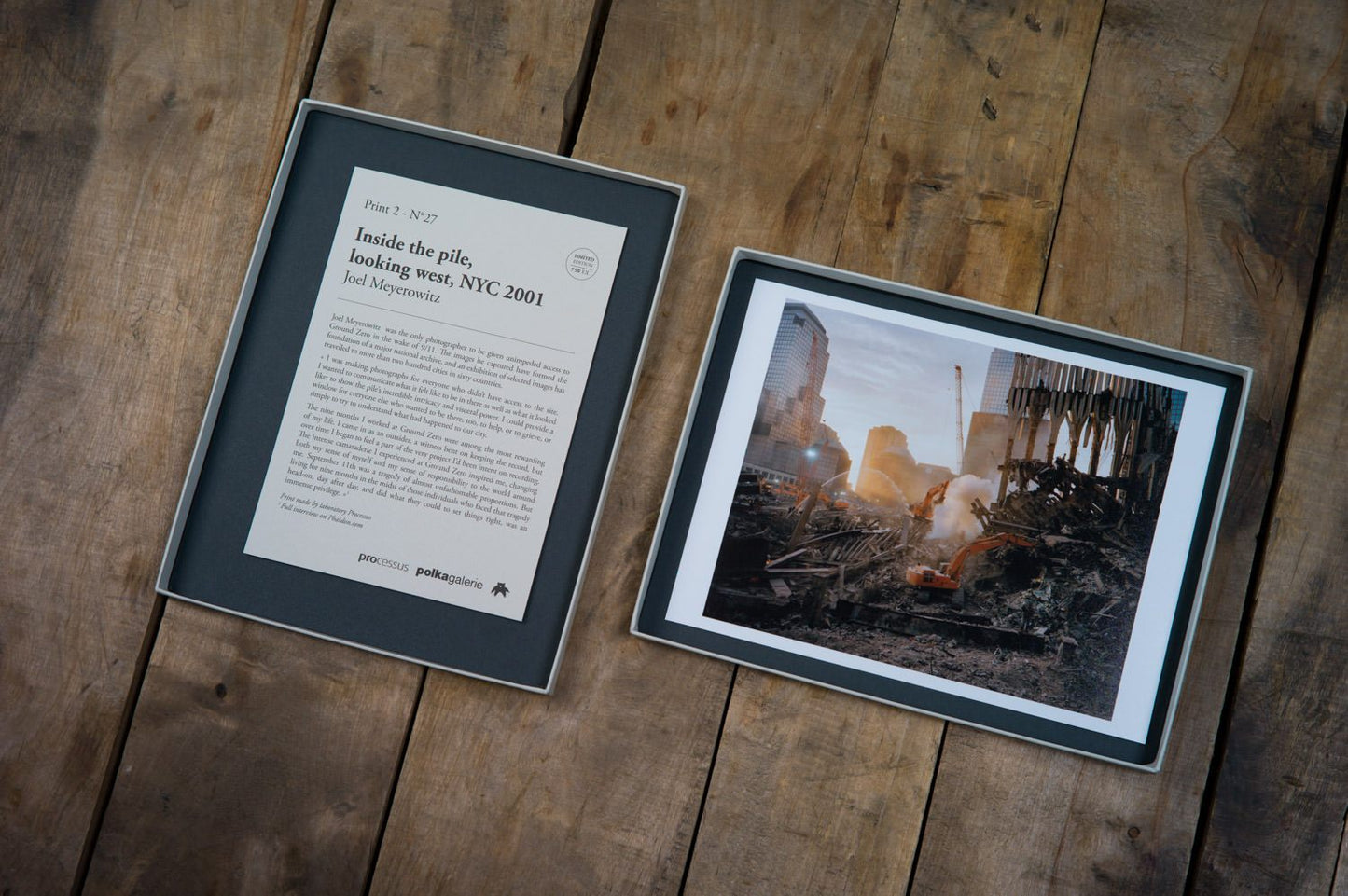 Inside the pile, looking west, NYC 2001. Tirage photographique de Joel Meyerowitz réalisé par le laboratoire Processus, format 18x24cm. Tirage vendu avec le coffret Wombat 27.