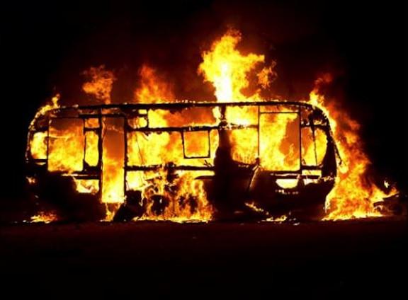 Son œuvre propose la mise en forme d’une histoire contemporaine incarnée par des personnages vivant en marge de la société. Parmi eux, des Tziganes que Mathieu Pernot a rencontré lorsqu’il était étudiant à l’Ecole nationale de la photographie d’Arles en 1995 et qu’il suit depuis près de vingt ans. On les retrouve ainsi dans la série Le Feu, produite spécialement pour l’exposition La Traversée au Jeu de Paume [2]. Une caravane ayant appartenu à l’une de ces familles brûle dans la nuit. Rituel spécifique à cette communauté se déroulant lors du décès du propriétaire de la caravane, la scène pourrait tout autant participer d’une action délictueuse. Comme des photogrammes extraits d’un film, les images laissent le spectateur tenter seul de comprendre le sens de ce qui lui est montré.